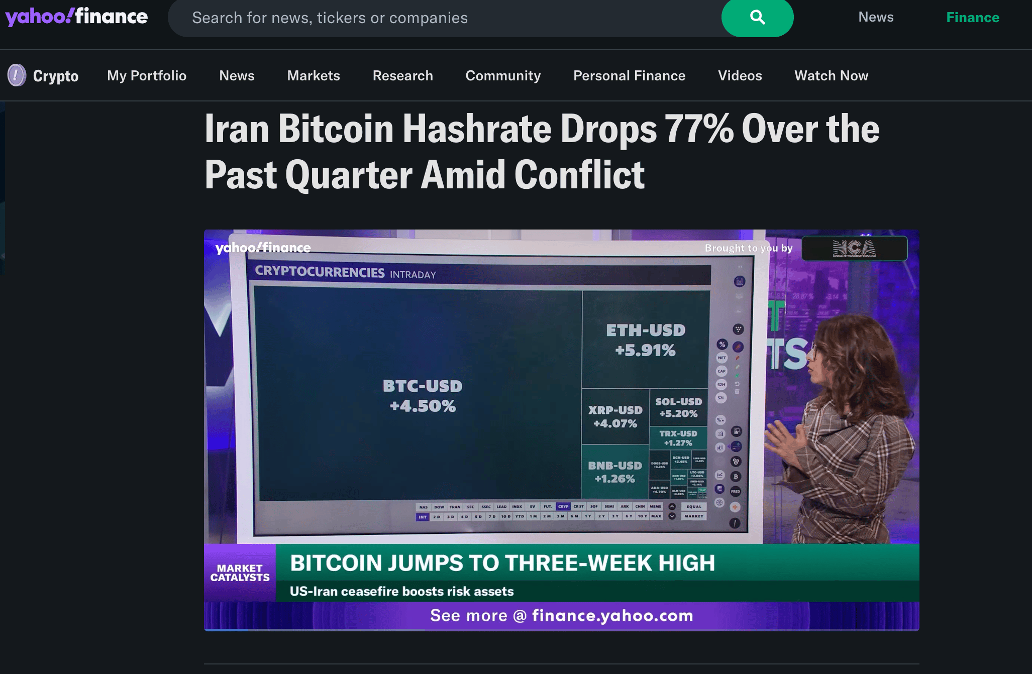 Iran ran one of the world's largest state-sponsored Bitcoin mining operations, using it to generate dollar-equivalent revenue and sidestep sanctions. Over the past quarter, amid the US-Iran conflict, that hashrate collapsed by 77%.