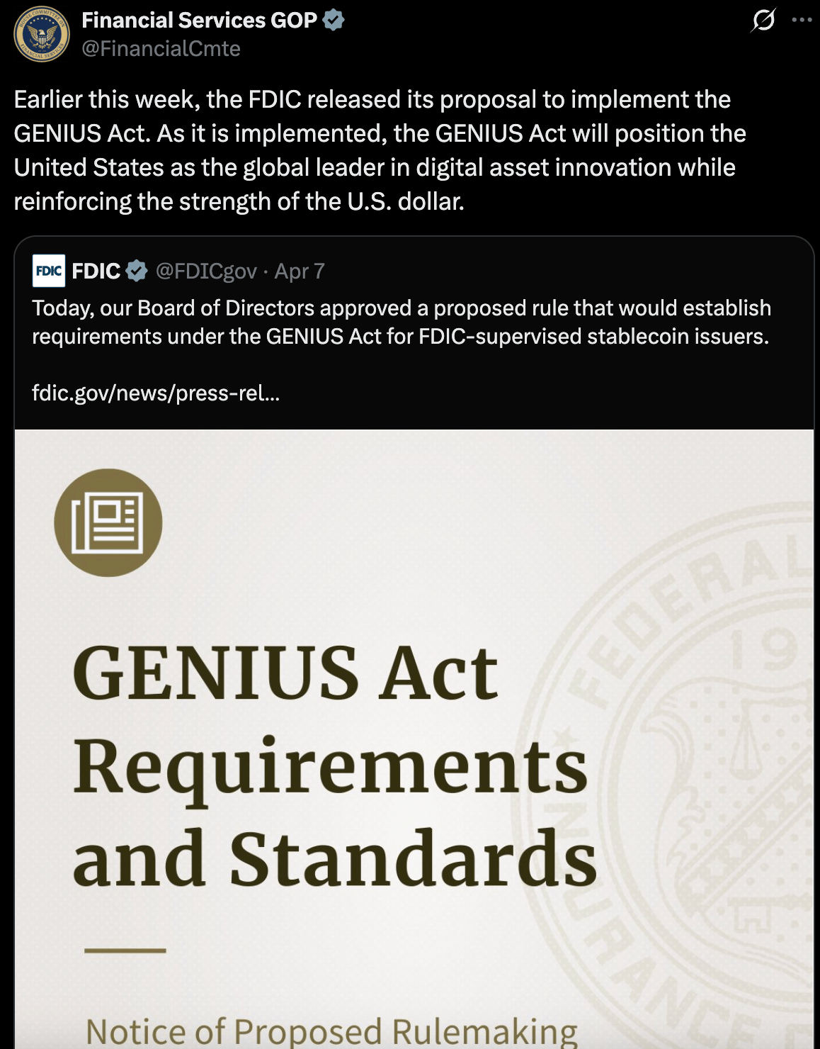 🏛️ The FDIC Moved to Implement the GENIUS Act. 266 Days After It Passed.